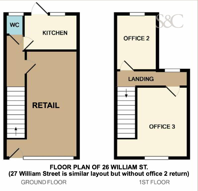Offering 2 self contained commercial properties for sale adjacent to one another in William Street, Portadown. Number 26 is let to a hairdressers, on a tenancy of 3 years from 1st April 2025 for £4,000 per annum. Number 27 has become vacant and was previously used as a reflexology clinic for many years. Both properties benefit from newly fitted white uPVC shop fronts, rear uPVC doors and front first floor double glazed windows. Electric roller shutters. A large car park is situated opposite as well as on street parking outside the units and William Street located close to Portadown Town Centre.