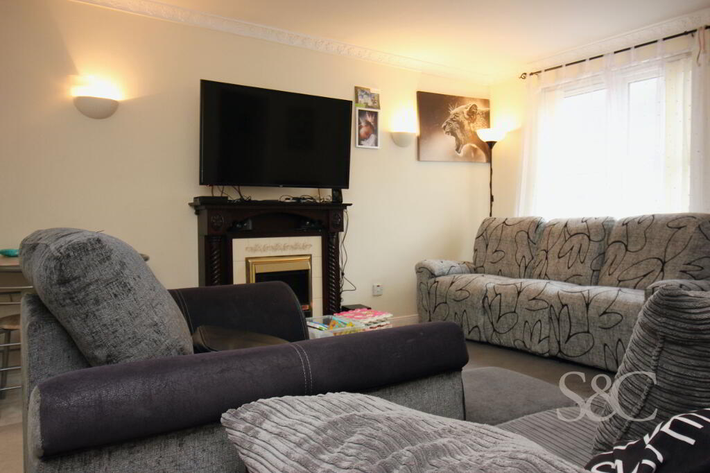 Main entrance White uPVC door with glazed panel leads to Lounge. Laminate flooring. Decorate fire with electric insert. Wall lights. View to front of property. Access to Bedroom 1, Bedroom 2, lobby to Shower Room & Kitchen.