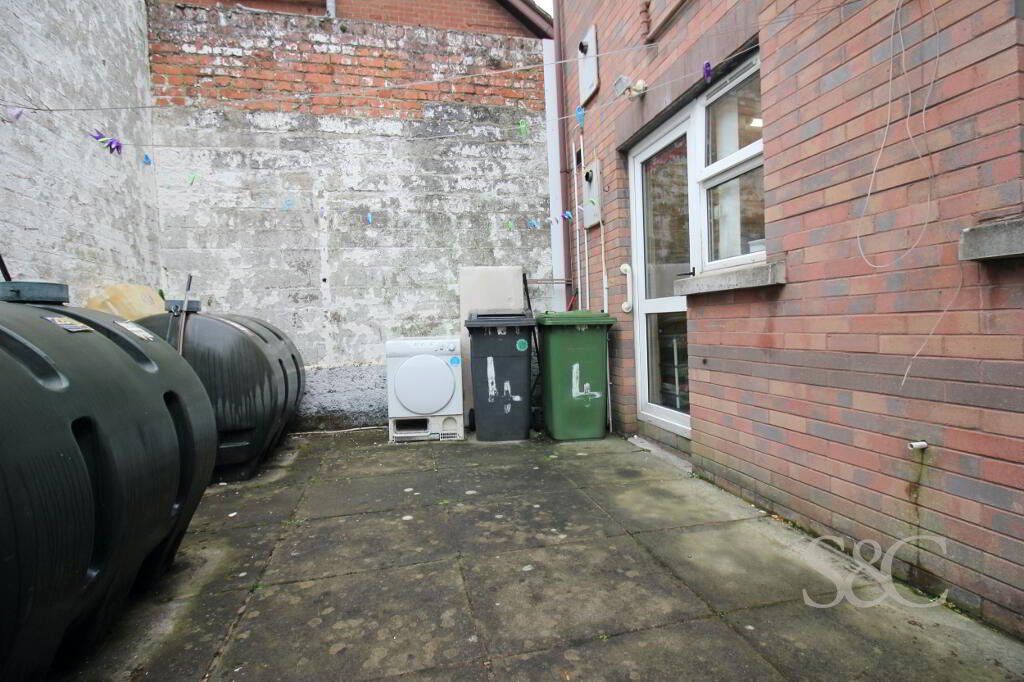 Paved area to rear. Oil tank and space for bins.